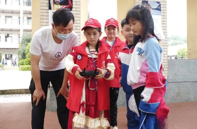 10月15日,邵阳新邵县酿溪镇第三完全小学和新邵县思源实验学校的操场上,无人机社团的学生们正在进行飞行训练。