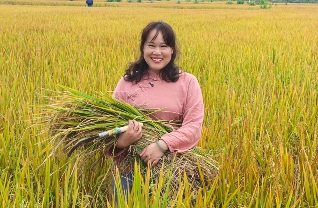 “你看这稻子,从泥里长出来也能闪着金光!”10月29日,周文娟举着一束饱满的稻穗,身后是翻滚的金色稻浪,对着镜头笑得灿烂。